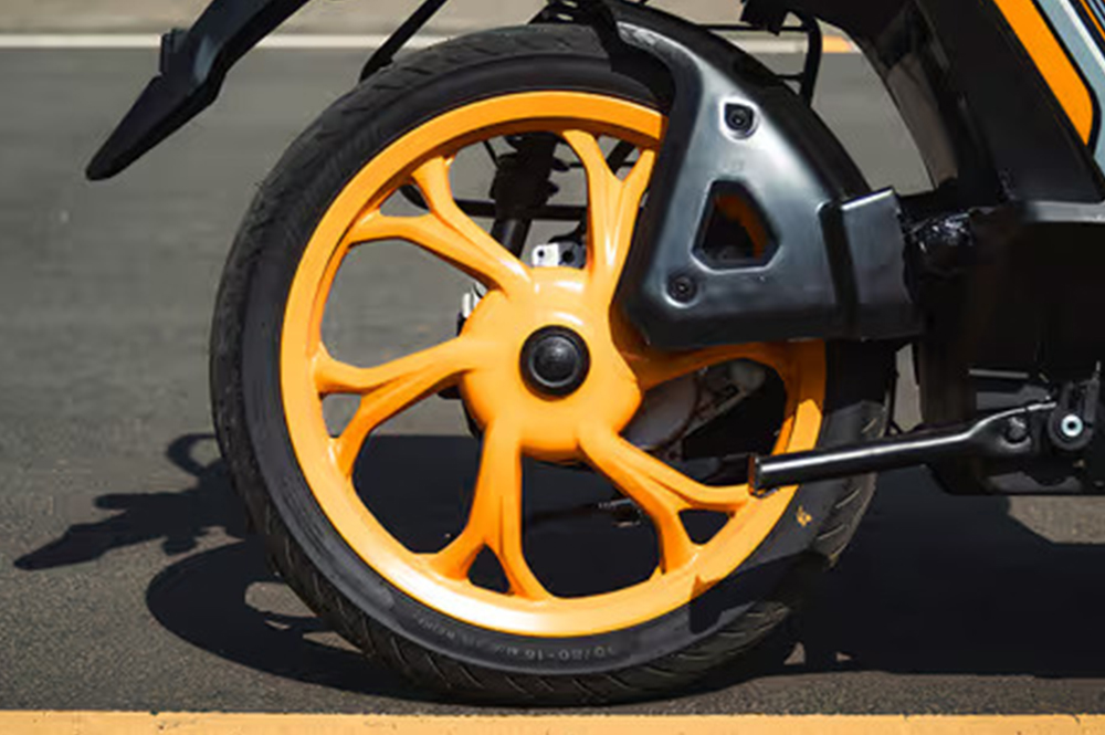 BGauss scooters have durable tubeless tires with 10-inch (C12i) or 12-inch (RUV 350 Max) wheels and CBS drum brakes for safety.